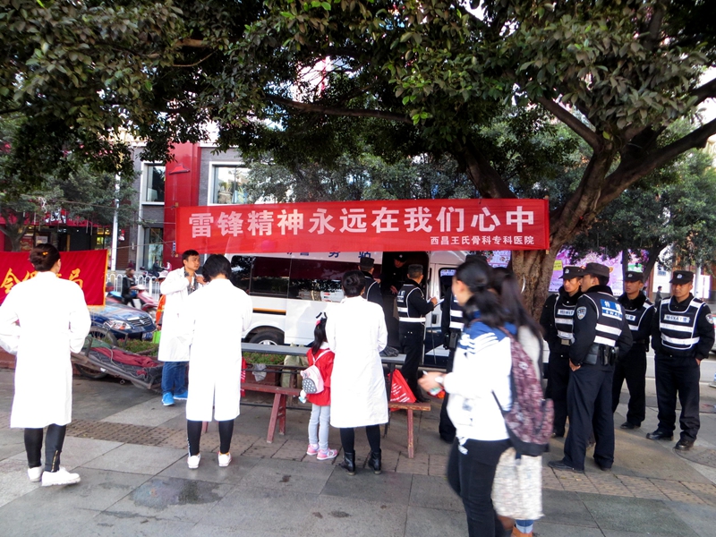 3月5日,由市文明办牵头,组织全市各级各类文明单位、文明行业和驻昌部队120多家单位及上百名青年志愿者在在月城广场开展了开展创建文明城市、法律、医护保健、理发等宣传、咨询、便民利民服务等活动,通过开展志愿服务,把爱心,化作暖流,奉献给社会,掀起了西昌市学雷锋志愿服务活动的热潮。